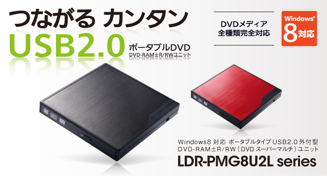 | LDR-PMG8U2LRD | Windows8対応 ポータブルタイプ USB 2.0 外付型DVDスーパーマルチユニット |