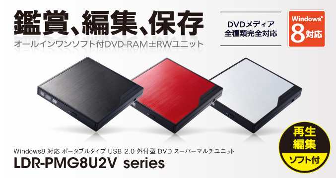 | LDR-PMG8U2VRD | Windows8対応 ポータブルタイプ USB 2.0 外付型DVDスーパーマルチユニット |