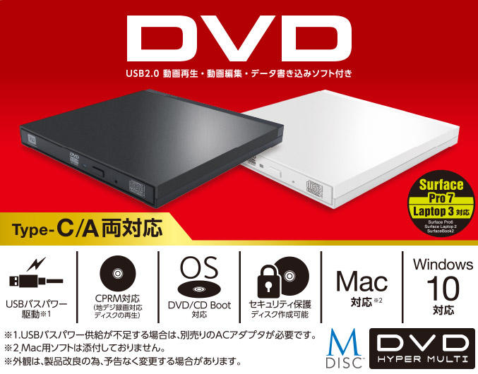 - *1:ドライブの仕様となります。Mac用ソフトは添付しておりません。