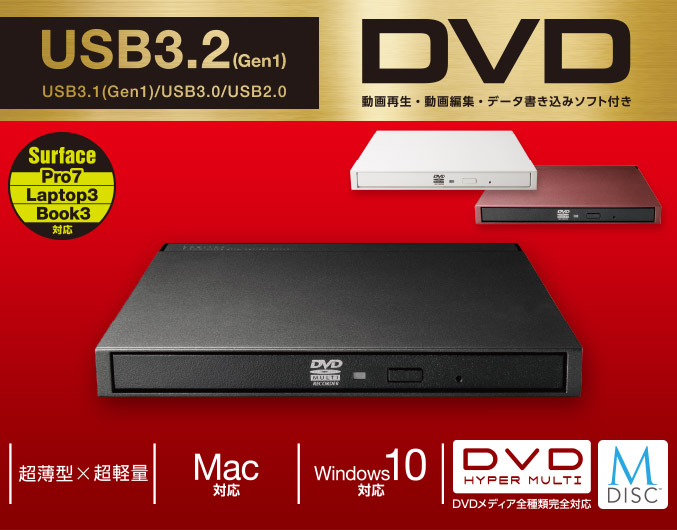 | LDR-PML8U3VBK | オールインワンソフト付き USB3.2(Gen1)ポータブルDVDドライブ |