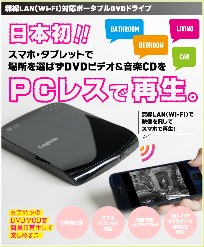 ※WiFi接続でDVDへの書き込み速度は等倍速となります ※WiFi接続と端末は1対1での接続となります |