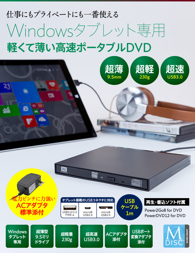 | LDR-PUB8U3TBK | Windowsタブレット用ポータブルDVDドライブ | 4580333558639 |