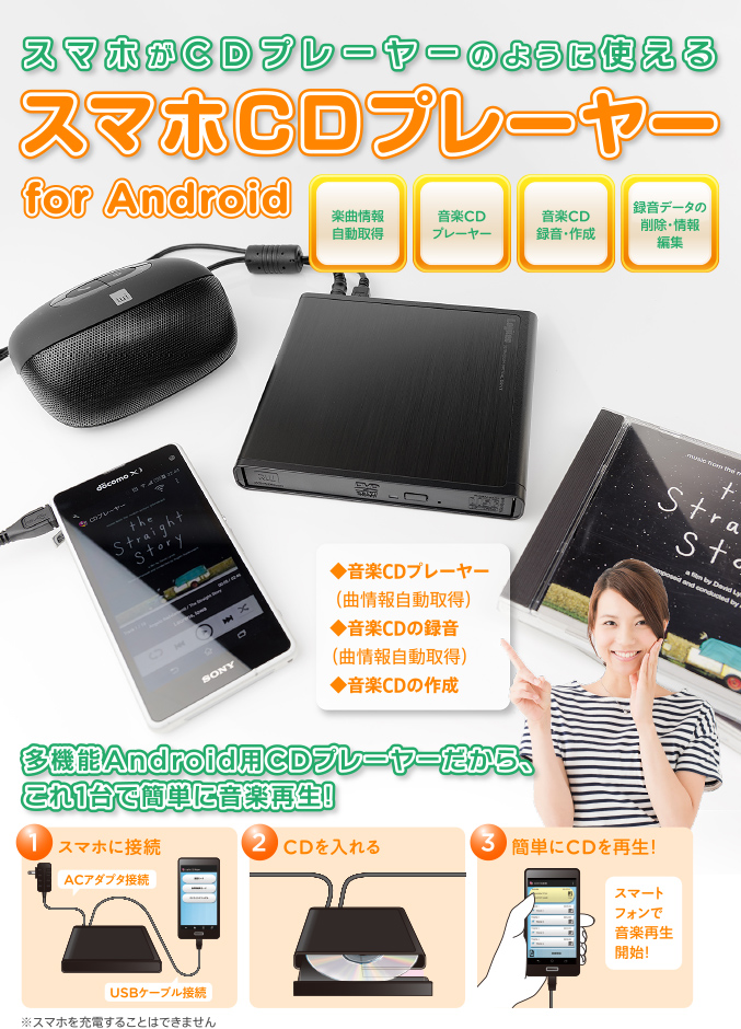 | LDRW-CDPLABK | スマホCDプレーヤー for Android | 4580333571263 | ¥4,280(税抜) | ニュースリリース |