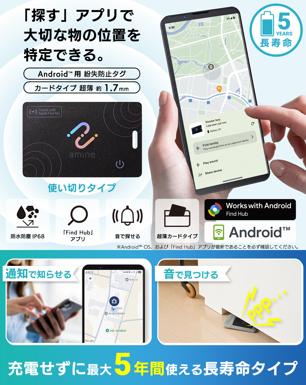 ※Android(TM)、Find Hub、Google Playは、Google LLCの登録商標または商標です。